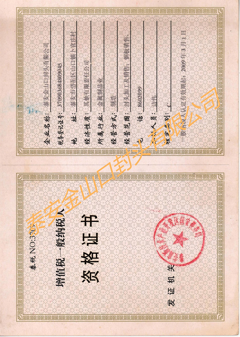 增值稅一般納稅人資格證書